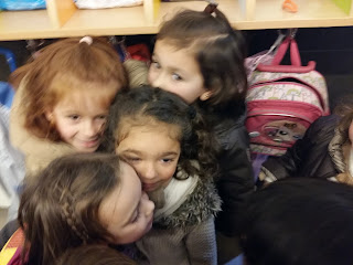 Lehenengo marrazki bana egin diogu eta taldeko argazkiak atera ditugu. Arratsaldean txutxeak jan eta gogoz besarkatu dugu gure adiskidetasuna barru-barrura sartzeko eta gutaz ez ahazteko. Zihur gaude lagun asko izango dituela eskola berrian eta espero dugu laster barru gu bisitatzera etortzea.